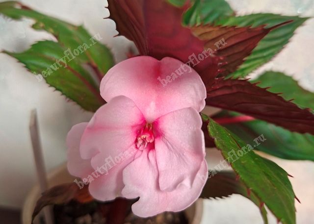 Бальзамин новогвинейский с крупными розовыми цветами.