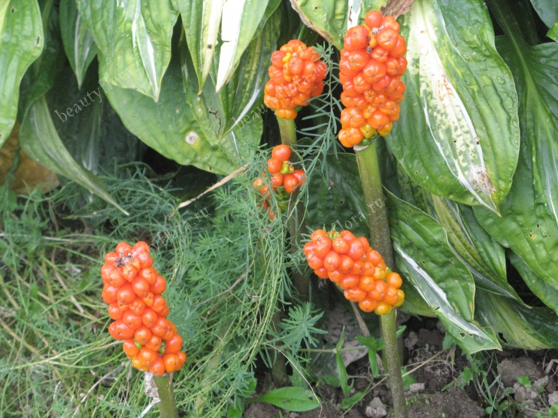 Решение: В августе, когда многие многолетники отцветают, у арума начинается главный спектакль. Насыщенно-красные факелы ягод вспыхивают в тени, как драгоценные камни, добавляя саду ярких красок до самых холодов.