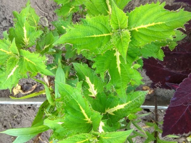 Листва светло-зеленая со светло-желтой серединкой.